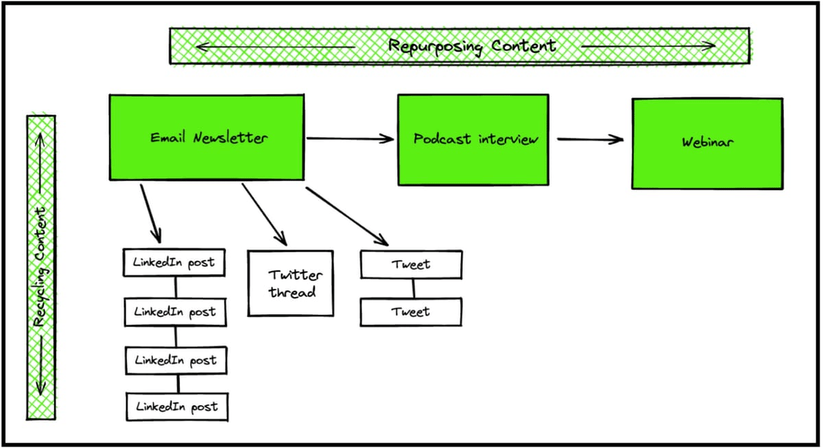 This provides great how-to content that educates buyers to realize they should make a change now. Plus, she can take the transcript and use it for the baseline of a customer case study. Plus she can apply the same waterfall strategy above to fuel her content output.