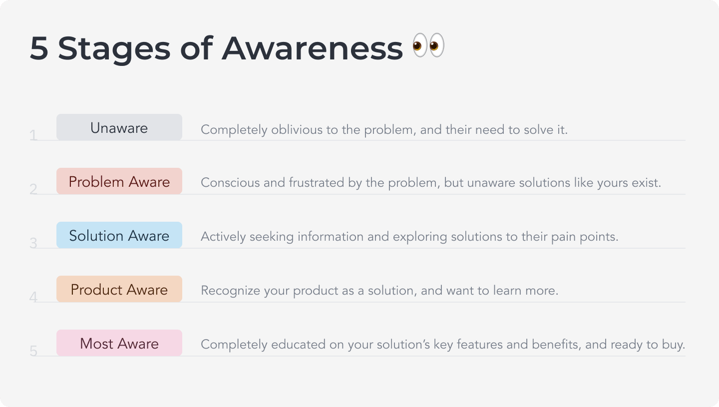 In it, he introduced the 5 Stages of Buyer Awareness: