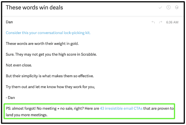 So we jumped into scale mode. We took our top 20 content offers in circulation and added this PS line to the associated auto-responder email.
